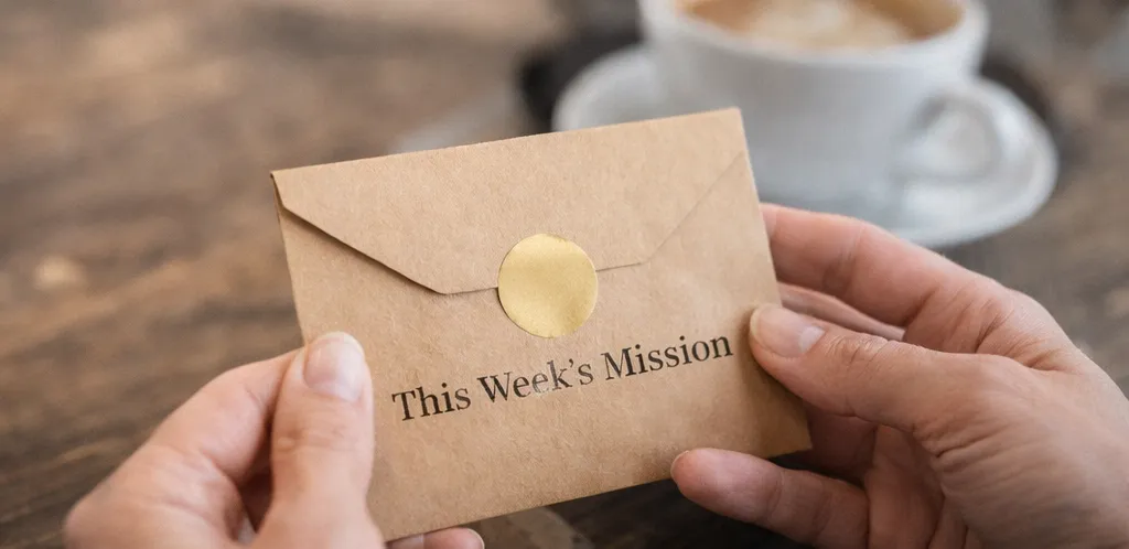 Each week, you'll visit a local coffee shop or bookstore, enjoy something small, and receive a sealed envelope with a simple health-focused mission, guidance, and a way to give back to your local community.